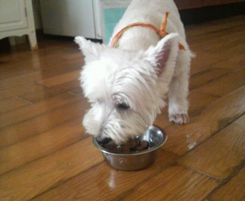 萌も祐菜も食べている時は怖くなり・・・ 蓮&大輝が近づくと 『うぅぅ・・・』と威嚇 のんびり食べてるのを邪魔をし叱られる始末 そんな今日も狙う姿が・・・ 一粒一粒良く噛んで食べる祐菜 叱られない範囲で狙う大輝 一粒でも落ちないかと 願うばかりの姿が笑えます