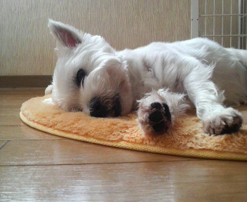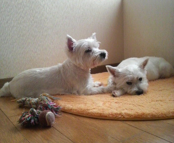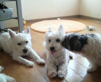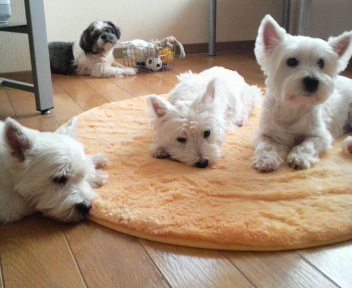 の中で遊んで疲れたわん達