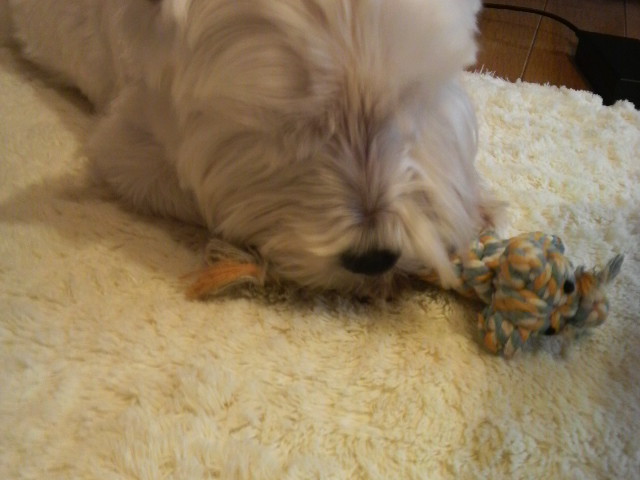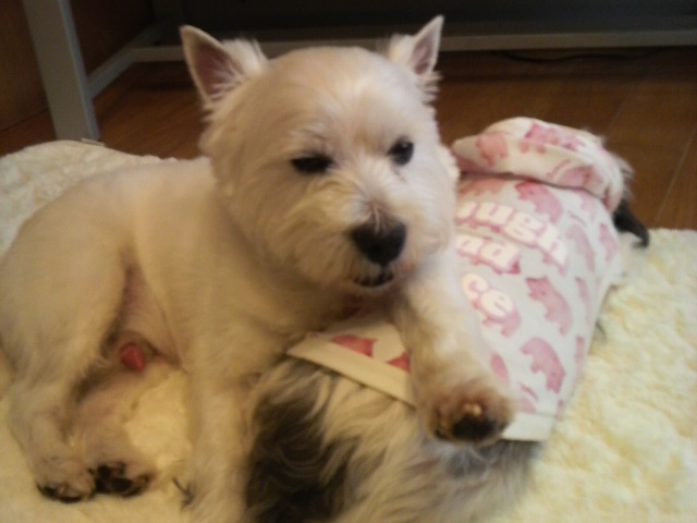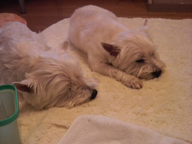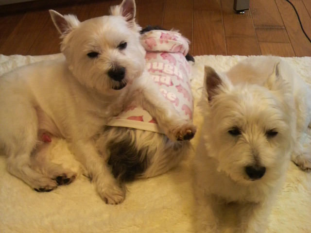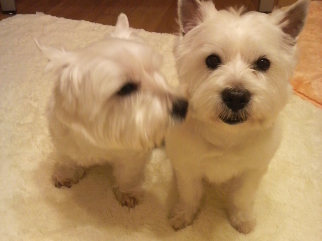 悪戯をして遊んでいるわん達です