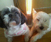 毛皮着ているのに、わんこ達も寒いようです