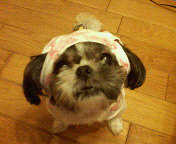 洋服を着る事に・・・フードをかぶせると硬直してましたププッ ( ̄m ̄*)