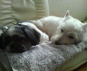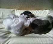 萌と大輝が仲良く寄り添ってねてます