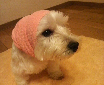 タオルを頭に巻き巻き